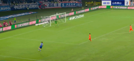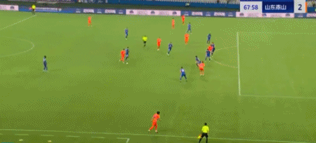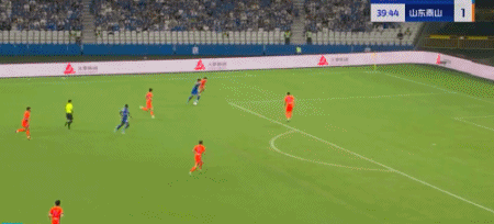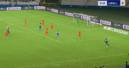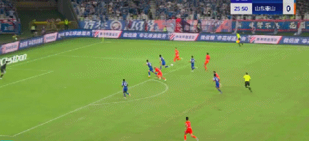 第45+4分钟,7场13球!卡扎轻巧停球后推射破门!山东再度扳平!